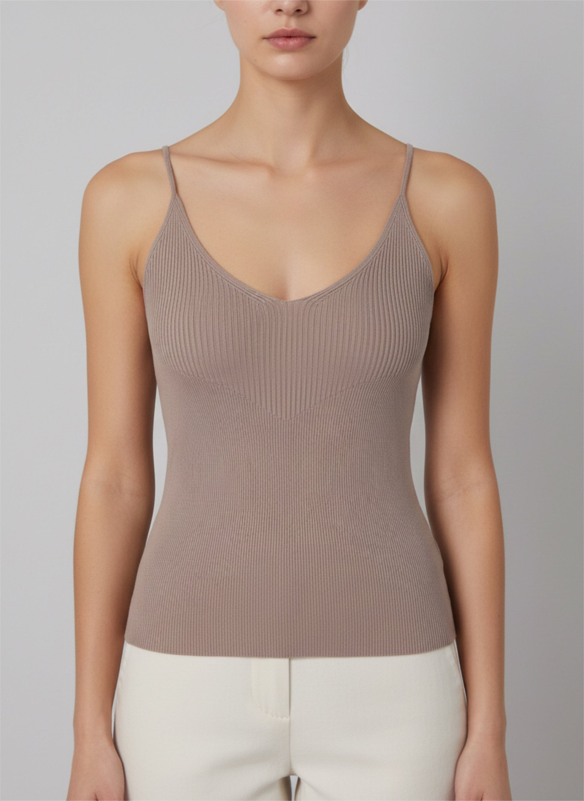 Stricktop tiefer V-Ausschnitt mit Spaghetti Trägern. Gerader Rückausschnitt.
